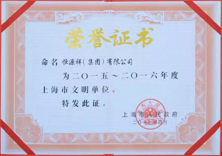 近日,恒源祥集团荣获“2015-2016年度上海市文明单位”称号,该荣誉证书由上海市人民政府颁发。这是恒源祥集团连续十一年获得该荣誉。