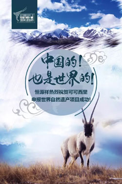 自青海于2014年10月正式启动可可西里申报世界自然遗产工作,可可西里申遗不仅牵动着包括恒源祥人在内的全国人民的心,更是受到全世界的关注。当地时间2017年7月7日下午13时,正在波兰克拉科夫召开的第41届世界遗产委员会大会上,经世界遗产委员会一致同意,青海可可西里获准列入《世界遗产名录》,成为中国第51处世界遗产,也是我国面积最大的世界自然遗产地,既填补了青藏高原世界自然遗产的空白,也结束了青海省无世界遗产的历史。