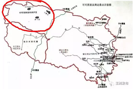红圈所示即为可可西里国家级自然保护区的大致范围(图片来源于网络)