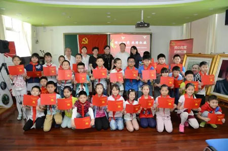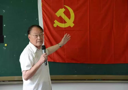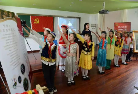 回民小学的老校长为同学们详细地讲解了党旗的历史沿革和深刻内涵。