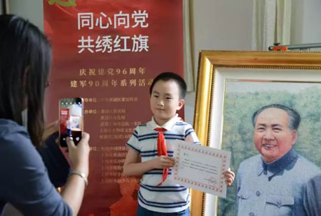 拿到参与“同心向党 共绣红旗”活动荣誉证书后,同学们表现得很兴奋与激动,举起证书与老师们合影留念。