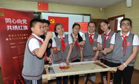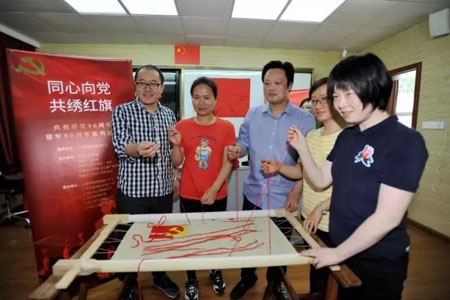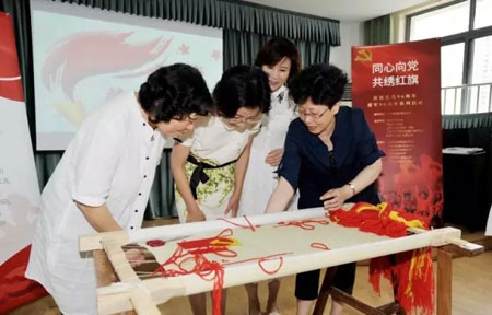 5月31日,“同心向党 共绣红旗”活动起针仪式