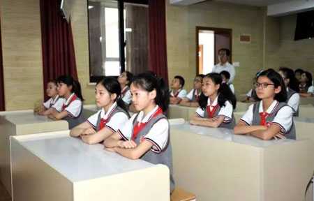 6月6日下午,顾红蕾书记一行第三站来到上海市明珠中学,“同心向党 共绣红旗”活动走进初中生的课堂。