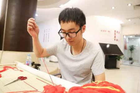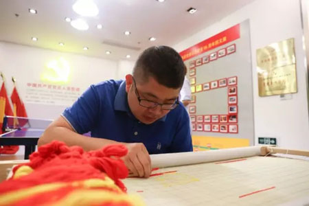 由恒源祥集团党委策划的“同心向党 共绣红旗”系列活动5月31日起针仪式后,6月1日进入格致中学校园。此系列活动的最大特色是以国家级非遗“海派绒绣”技艺,共同绣制一面党旗,这面千针万线绣制而成、凝聚着深情厚谊的党旗将于今年七一建党前夕捐赠给武警上海市总队一支队。