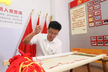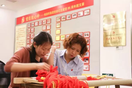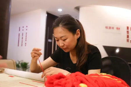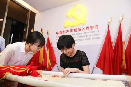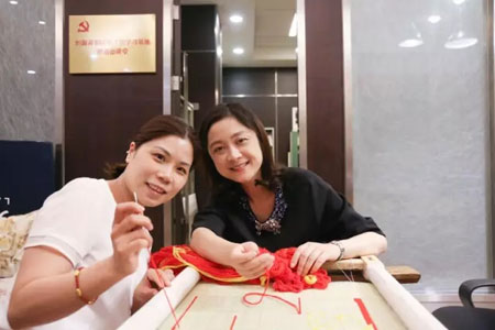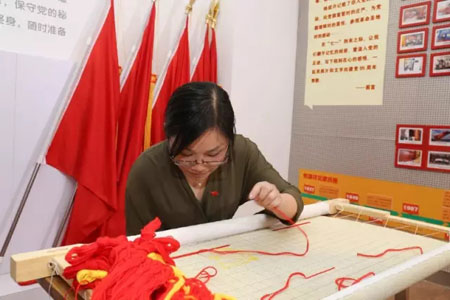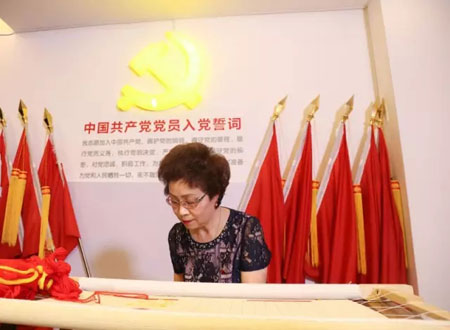 在陈忠伟总经理、顾红蕾书记的带领下,集团的党员们踊跃地拿起了绣针共绣党旗,一针针、一线线地表达着发自内心“爱党、爱国、爱恒源祥”的真情。