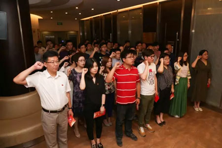 由集团纪委书记孙羽领誓,全体党员高举右手,重温了自己对党忠诚的誓言,再次表达了为党的事业奋斗终身的决心和愿望。毫无疑义,入党宣誓这一刻是全体党员最神圣、最骄傲的记忆。