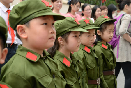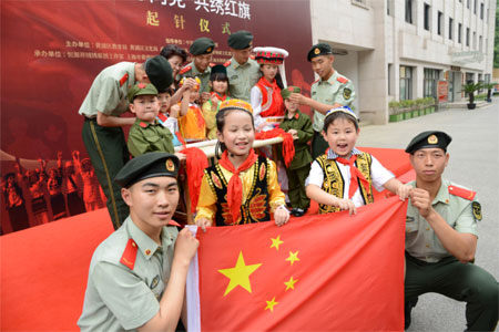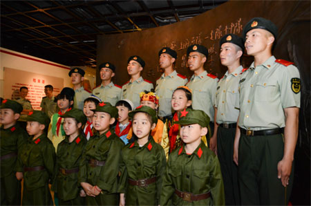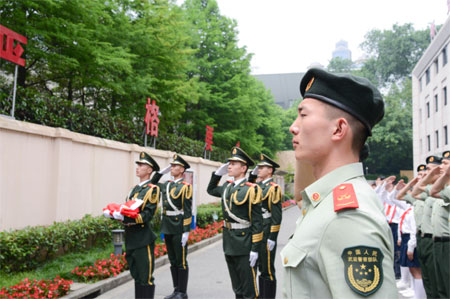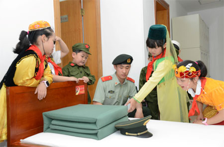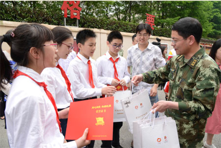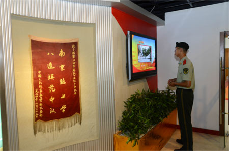 江泽民同志曾亲临一支队的十中队视察,并题词“南京路上学八连,霓虹灯下新一代”,此次各族青少年代表在建党、建军节前夕和支队官兵一起用绒绣技艺共绣一面红旗,活动的开展激发了官兵们的荣誉感与使命感。