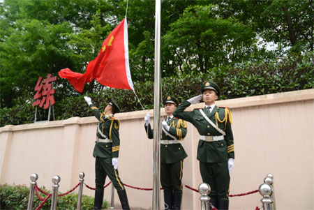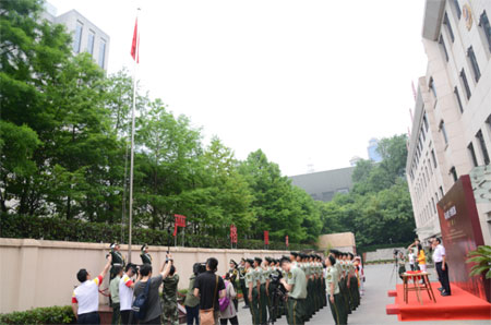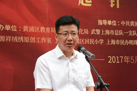 5月31日上午,由黄浦区委宣传部指导,黄浦区教育局、黄浦区文化局、武警上海市总队一支队、上海市非物质文化遗产保护协会、恒源祥集团共同主办的“同心向党 共绣红旗”活动起针仪式在位于上海黄浦区的武警上海市总队一支队举行。
