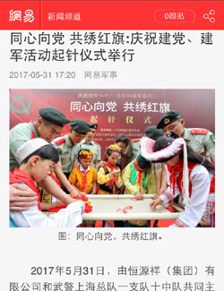 “同心向党 共绣红旗:庆祝建党、建军活动起针仪式举行”——网易新闻频道5月31日报道。