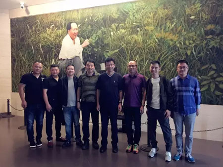 恒源祥与毛泽东同志故居颇有渊源,陈总之前也多次前往毛泽东同志故居、纪念馆参观访问。在毛泽东同志诞辰120周年之际,2013年12月18日,恒源祥集团总经理陈忠伟一行应邀参加纪念毛泽东同志诞辰120周年活动,并向韶山毛泽东纪念馆捐赠恒源祥巨幅绒绣像《大地之子•人民领袖毛泽东》,整幅作品由绒绣师、设计师、染色师等10多人,耗时半年完成,绣像长6.75米、高2.53米。(合影背景即为《大地之子•人民领袖毛泽东》绒绣像)