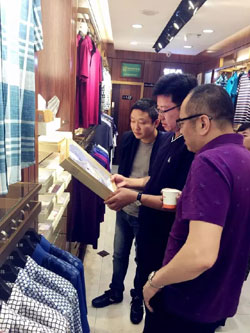 陈总一行人首先走访了位于衡阳的恒源祥服饰专卖店。陈总仔细询问了当地经销商的经营情况,认真查看了店铺货品陈列。