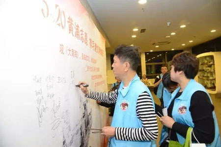 文明是人的品格集于一身的体现。黄浦区志愿者们弘扬志愿服务精神,恪尽职守,无私奉献,率先示范,践行文明,全力以赴参与全国文明城区创建。活动中,志愿者们纷纷在签名墙上签名与留言,为黄浦区创建文明城区做表率。
