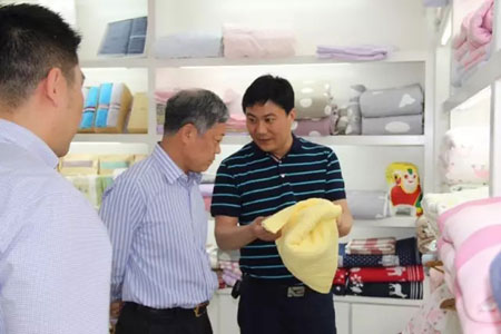 2017年5月3日上午,恒源祥集团董事长刘瑞旗在彩羊家用纺织品总经理涂俊的陪同下莅临彩羊家纺九厂金浩阳毛巾工厂参观指导工作,公司总经理董耀辉、恒源祥河北分会会长吴洪琴热情接待。董总向集团领导汇报了公司加盟恒源祥集团后的发展情况及后续规划,董总和刘董就毛巾行业今后的发展方向作了深入的沟通交流。