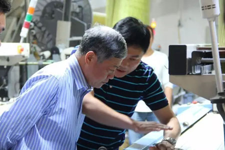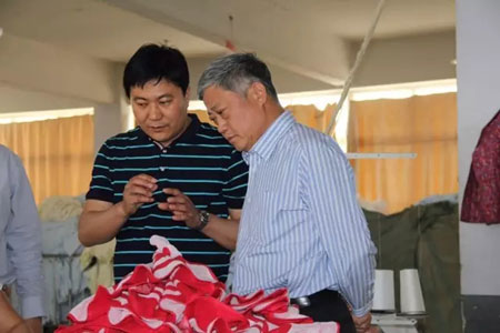 刘瑞旗董事长参观了新的织造车间,织造设备是2015年斥资近千万引进的国际先进设备,刘董对织造车间及工艺给予了高度评价。