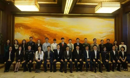 图:上海市黄浦区委书记汤志平、副书记丁宝定、黄浦团区委负责人袁登全等领导接见了恒源祥集团团委书记刘帅等黄浦区优秀青年代表。(前排左七:黄浦区委书记汤志平;前排右六:黄浦区委副书记丁宝定;前排左六:黄浦团区委负责人袁登全;后排左八:恒源祥集团团委书记刘帅)