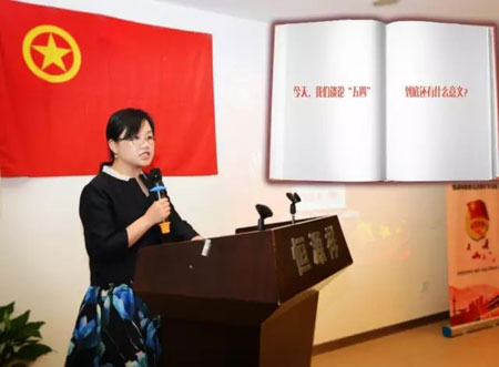 活动最后,浓浓书卷气质的顾红蕾书记化身为“朗读者”,她朗诵的题目是《今天,我们谈论‘五四’到底还有什么意义?》,“‘五四’讲述的是爱国、进步、民主、科学,可这几个大词绝非就概括完了这个超大故事的无数内涵。‘五四’在根子上提醒了我们这样一点,只有将个人与民族、国家和社会的命运联系在一起,我们才能跳出个人欲望和消费主义的逼仄世界,才能拥有历史感和意义感,才能爬出一己小我的泥淖,才能超越各种现实的困境,拥抱更大的世界。”