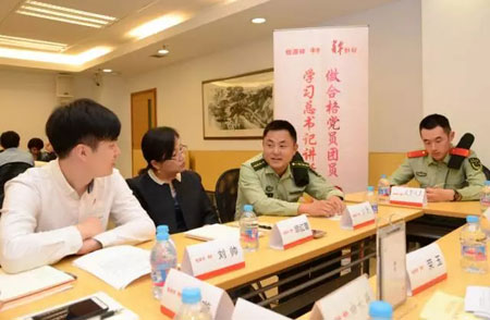 恒源祥集团联建单位武警黄浦支队的青年代表、集团领导班子、集团青年员工们参加活动。活动由行政中心的青年员工贺加贝主持。