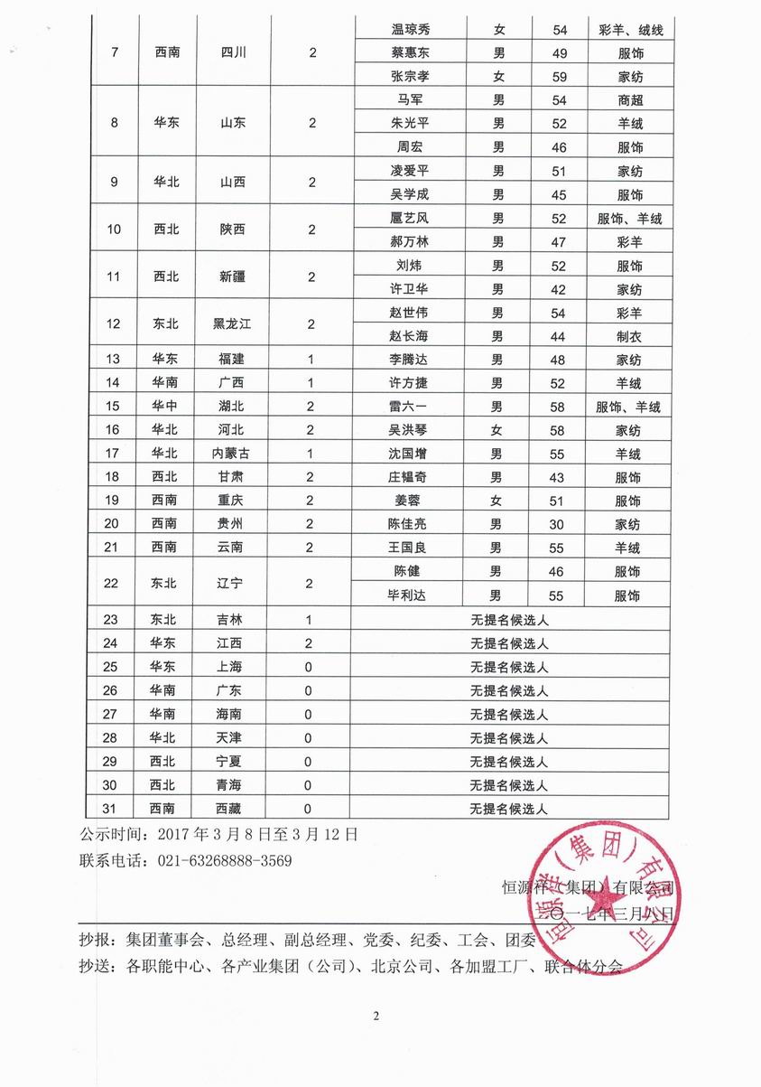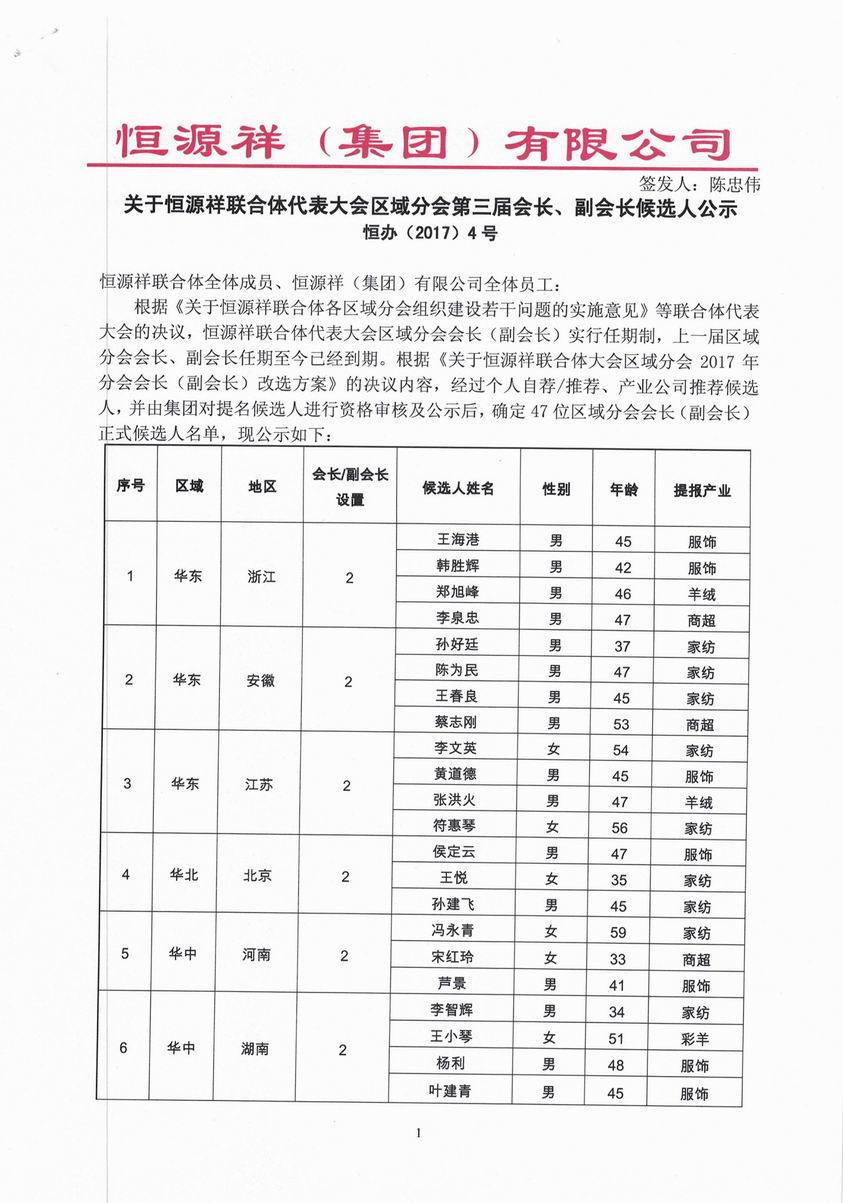 关于恒源祥联合体第三届区域分会改选的候选人公示