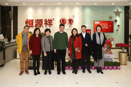 2月15日,上海中心总经理杨文琪、副总经理王海荣等一行来访恒源祥。集团总经理陈忠伟、副总经理陈晨,热情接待了来访嘉宾一行。