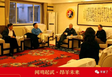 1月22日下午,国际武联主席于再清、执行副主席吴廷贵、秘书长刘北剑,国际武术有限公司董事长刘瑞旗,恒源祥北京公司副总经理刘晓今一行前往国家武术运动管理中心进行访问。国家武术运动管理中心主任、国家武术协会主席张秋平,副主席张玉萍等领导热情接待。