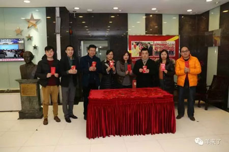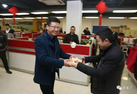 在陈忠伟总经理的带领下,集团领导一行带着新春的气息,喜气“羊羊”地来到各产业和各职能中心向员工们拜年,祝所有员工新春快乐!财源广进!生活甜蜜!陈总亲自一一送上甜甜蜜蜜的巧克力,祝员工们2017新春美好的开端!