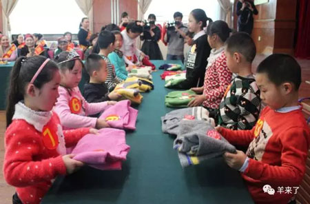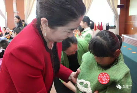 启动仪式现场,接受捐赠的孩子们脸上洋溢着幸福的笑容。新疆阿勒泰地委领导和地区妇联领导将一件件、由爱心父母亲手编织的毛衣穿在了活动现场的20名孩子身上,表达对全区儿童的深情问候。一根根饱含母爱的毛线,将内地爱心妈妈与新疆孩子们温暖相连,用一件件温暖厚实的毛衣,为孩子们送去冬日的关爱和温情。