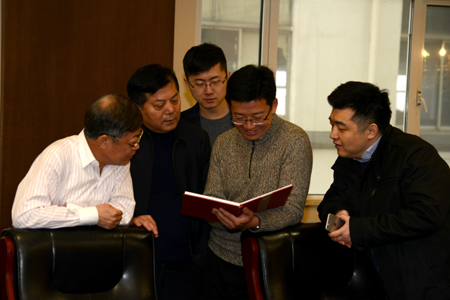 陈忠伟总经理代表恒源祥集团将《感恩有你》相册赠送给核心工厂负责人陈伯清、秦发行、毛二度、黄建钧,感谢他们为恒源祥联合体发展作出的贡献。