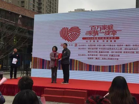 12月14日,已在湖北落户十年的“恒爱行动——百万家庭亲情一线牵”活动,在武汉热烈启动,将通过“爱心妈妈”们的手,织出一件件饱含爱心的毛衣,为湖北省部分受灾贫困儿童以及新疆博州、农五师的儿童带去关爱与温暖。湖北省妇联主席彭丽敏、副主席王保举、省直机关工委、省援疆办、省民政厅、楚天都市报、湖北经视等单位和恒源祥(集团)有限公司湖北分会会长肖常辉、全国道德模范董明以及省直爱心妈妈代表、社区代表、社会组织代表等200余人参加了启动仪式。