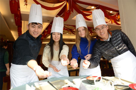 上午,新员工们在八楼天艺阁制作创意水饺,各小组展开激烈的比拼,各式各样的水饺饱含了新员工们的心意和祝福,热气腾腾的水饺送往集团各职能中心和产业公司。