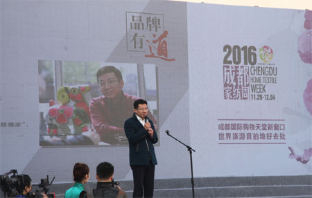 11月29日上午,以“家纺名城 魅力彭州”为主题的“2016成都家纺周”开幕式暨品牌发布秀在成都彭州举行。恒源祥集团总经理陈忠伟应邀出席,并发表题为“品牌有道”的精彩演讲。