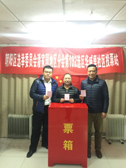 11月15日上午,第十六届朝阳区人大代表换届选举在潘家园活动中心热烈举行,恒源祥北京公司选民代表们共投下神圣庄严的九票。此次选举不仅是恒源祥公司员工行使公民的民主选举权利,而且也表达了对地区人大代表的期望。 此次区、乡人大换届选举是朝阳区在落实首都城市战略定位,扎实推进京津冀协同发展的新形势进行的,是全区人民政治生活中的一件大事。北京公司积极配合潘家园地区华威里社区人大换届选举工作,得到潘家园街道工委一致好评。(通讯员:陈艳艳)