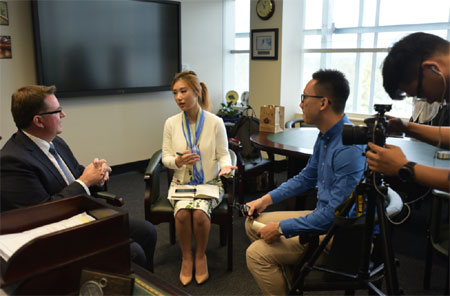 10月12日,恒源祥家纺总经理助理孙蕴聪与阿里巴巴集团新媒体部门一行拜访澳大利亚昆士兰州洛根市市政厅,围绕洛根市政府与中国企业合作前景、恒源祥与澳洲羊毛产品的合作机遇等问题对洛根市市长卢克史密斯进行了采访。(周五频道 报道)