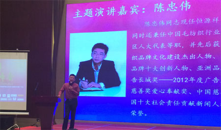 会上,恒源祥集团总经理陈忠伟作为题为“品牌决定财富,文化决定命运”的主旨演讲。陈总以恒源祥对品牌的认知为出发点,重点阐述了互联网时代下人工智能、万物互联等新技术将会给整个社会带来的巨大变革,并指出品牌企业只有认清未来的发展趋势,找到自己的核心专长,并在此基础上与所有合作方构建起一个命运共同的生态系统,才是未来长期生存和发展的方向。