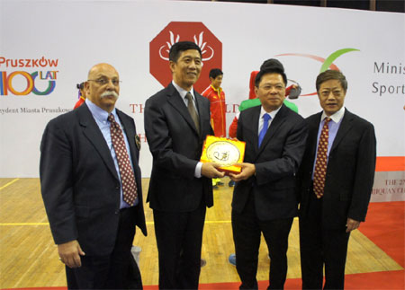 10月16日至20日,由国际武术联合会主办、波兰武术联合会承办的第二届世界太极拳锦标赛在波兰首都华沙西南部普鲁斯科夫市体育馆举行。恒源祥集团董事长、国际武术有限公司董事长刘瑞旗应邀出席锦标赛的开幕式、颁奖典礼以及闭幕式。