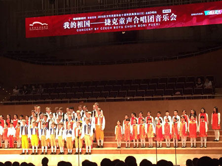 8月21日,在“东方市民音乐会•晚场版”的舞台上,来自本土的上海好小囡少儿合唱团与捷克童声合唱团联袂献唱黄自作曲的《踏雪寻梅》,中捷两国的“好小囡”在舞台上擦出令人惊喜的火花。