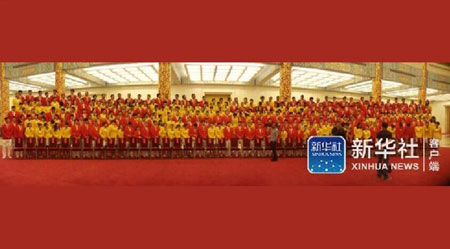 7月18日下午,羊来了里约奥运会中国体育代表团动员大会在人民大会堂举行,标志着中国体育代表团正式成立,剑指里约即将出征。本届中国代表团总人数是711人,其中运动员416人。当日,运动员们身穿里约奥运礼服参会,在人民大会堂留下首张“番茄炒蛋”大合影。中国代表团将第三次穿着由中国奥委会赞助商恒源祥精心订制的礼仪装备亮相夏季奥运会的开闭幕式现场,有力展现了中国健儿积极、友好、热情的国际形象。