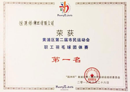 “爱生活,爱运动”是恒源祥人的文化,在集团工会的精心组织下,6月26日,恒源祥员工代表参加在黄浦区工人体育馆羽毛球馆举行的黄浦区第二届市民运动会职工羽毛球团体赛,并喜获冠军的好成绩;5月29日,员工代表参加在黄浦区体育馆举行的黄浦区第二届市民运动会外滩社区羽毛球赛,获得亚军。