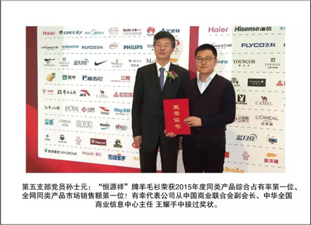 2006年恒源祥集团党总支升格为党委,恒源祥党委出色的党建工作获得社会的充分肯定,在这个光荣的组织中,涌现出一批先进的共产党员,他们在各自的工作岗位上做出了突出的成绩。