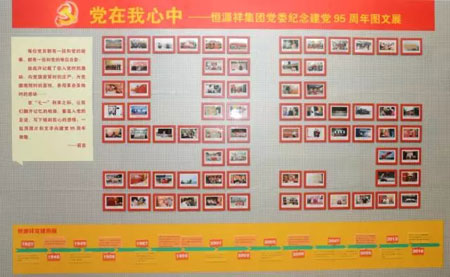 7月1日,在恒源祥集团党日主题活动中,“党在我心中”图文展正式揭幕。72幅照片巧妙地排列成“95”的字样 ,寓意集团全体党员向建党95周年致敬!