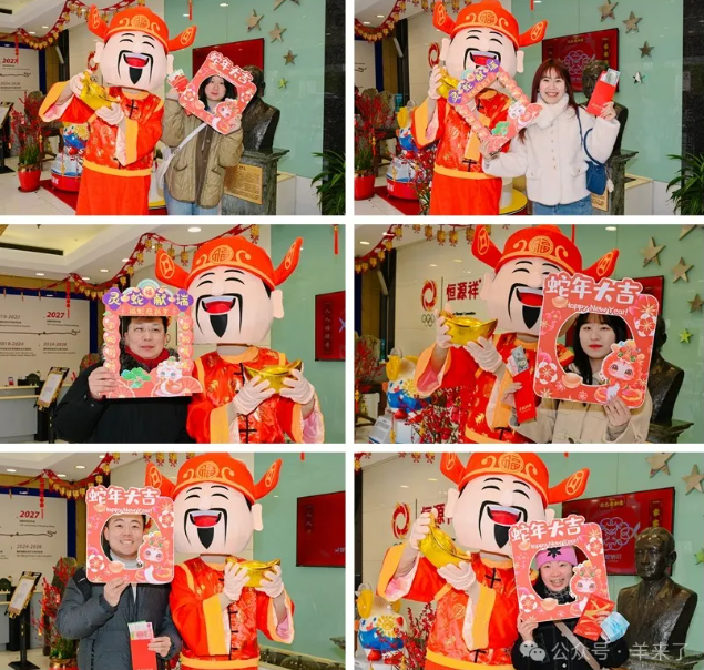 祥龙摆尾辞旧岁,灵蛇纳福迎新春。“新年好!给大家拜年啦!”派送开工红包后,陈忠伟董事长、顾红蕾书记一行来到各产业、职能中心、好小囡文化艺术中心、恒源祥绒绣原创工作室、朗戈传播等拜年,为员工们送上甜甜蜜蜜的巧克力。集团领导的亲切问候和鼓劲,让员工们满怀热忱、干劲十足。大家表示:对新的一年充满信心,将继续奋斗,勇毅担当,愿以优异的成绩迎接即将到来的品牌百年。
