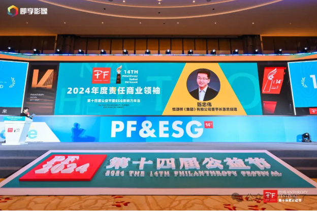 本届公益节内容设置丰富多彩,不仅特别呈现了2024“有温度的品牌”展,对过去一年中社会创新与公益践行的卓越成果进行展示,而且表彰了一批在推动社会责任和可持续发展方面做出突出贡献的企业和个人。经提名推荐、评委会审议等层层遴选,恒源祥集团斩获“2024年度责任品牌奖”,集团董事长兼总经理陈忠伟被授予 “2024年度责任商业领袖”荣誉称号。
