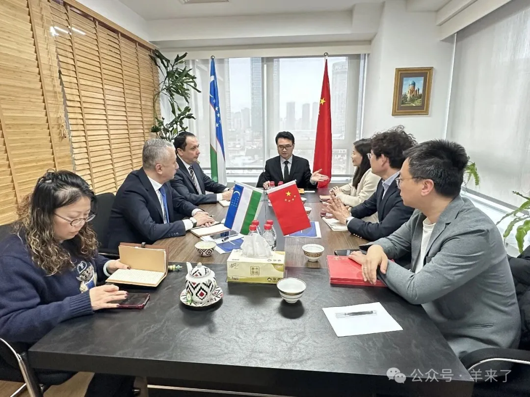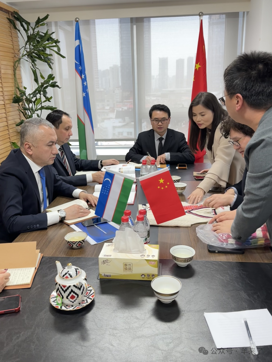 3月3日,春意渐浓之际,由集团文化宣传部总监季松滔、副总监张显北,公益慈善部副总监周之晶等组成的恒源祥代表团,拜访了乌兹别克斯坦共和国驻上海总领事馆,受到了总领事 Rustam Ismoilov 先生及副总领事 Ubaydullaev Kutbiddin 先生阁下的亲切会见。双方在友好的氛围中,举行了一场高效务实的会谈,为中乌民间友好交流注入了一缕温暖的春风。