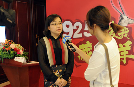 恒源祥集团党委副书记顾红蕾接受上视新闻综合频道采访,介绍了一系列活动的目的就是为了让更多的人关注、参与藏羚羊救护工作。(文■恒源祥集团传播与策划中心)