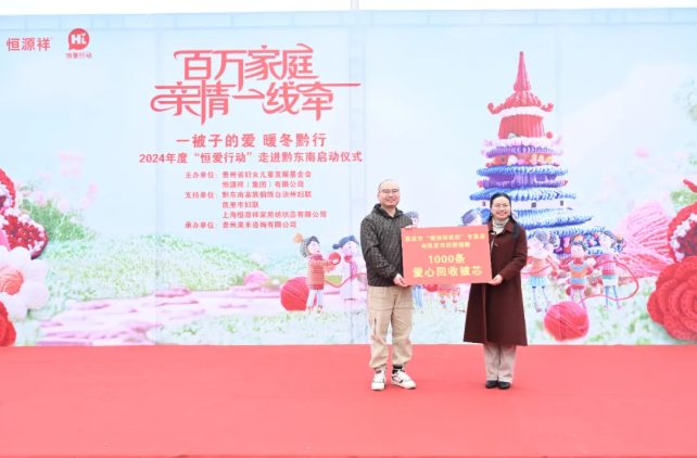 12月26日上午,由恒源祥集团与贵州省妇女儿童发展基金会共同主办,黔东南苗族侗族自治州妇联、凯里市妇联、上海恒源祥家用纺织品有限公司共同承办,贵州果禾咨询有限公司公益支持的“一被子的爱 暖冬黔行——2024 年‘恒爱行动’走进黔东南”主题公益活动启动仪式在贵州省黔东南州凯里市民族博物馆广场成功举办。活动现场吸引了300多名爱心人士,并获得新华社,中新网,凯里融媒体等媒体的报道。