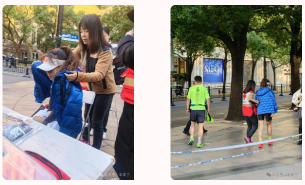 志愿者蒋喆漪脱下自己的外套给有失温风险的受伤选手穿上,在了解其因伤需退赛前往终点取个人物品的需求后,护送至地铁站,在选手没有手机和零钱的情况下主动为其购买了车票。