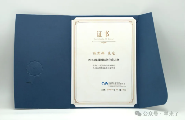陈忠伟董事长荣获“2024品牌国际化年度人物”