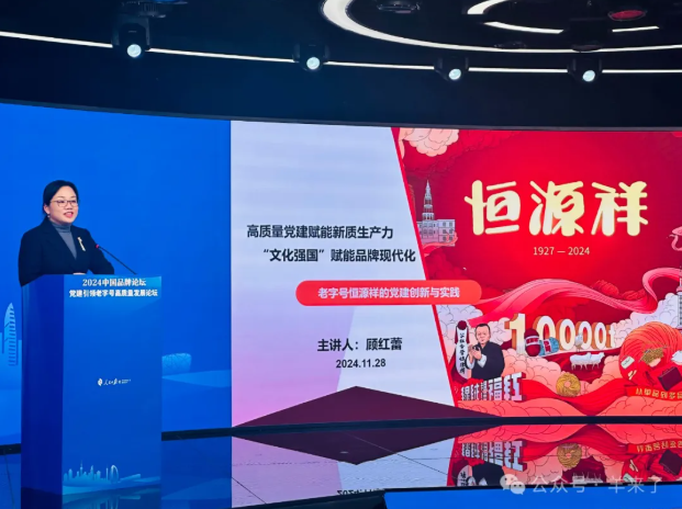 老字号作为一项重要载体,承载着深厚的历史文化底蕴、精湛的技艺和独特的品牌价值。老字号的创新发展不仅有利于传承和延续历史文脉,增强文化自信,而且是适应经济社会发展和市场需求变化的必然要求,2024中国品牌论坛首次设立 “党建引领老字号高质量发展论坛”,来为推进中国式现代化贡献品牌力量。集团党委书记顾红蕾在论坛上作“高质量党建赋能新质生产力,文化强国赋能品牌现代化——老字号恒源祥的党建创新与实践”主题演讲。