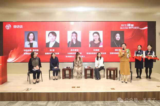 由区妇联副主席范志韵主持的“微访谈”环节,邀请了金融外滩妇联主席周熠、恒源祥集团妇联主席顾红蕾、黄浦区旅游行业妇联主席张捷娜,以及上海公益新天地园妇联“未来媒体人”项目负责人余古家佳,分享推进“三新”领域妇联全覆盖工作的有益尝试与探索。