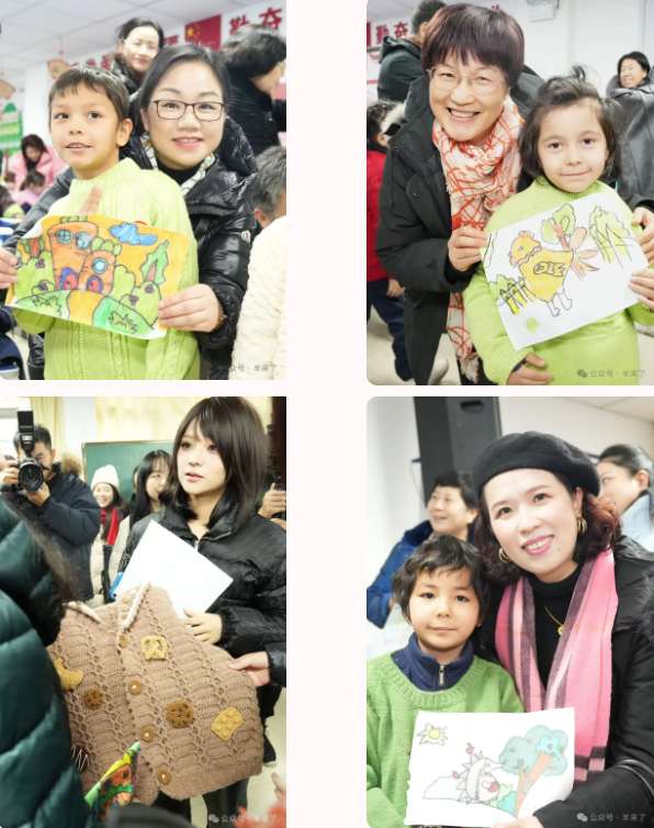 随后,陈忠伟董事长一行人来到新居社区文化学校,亲手为这里的学龄前儿童穿上了来自全国各地的爱心毛衣,并且带来了写满祝福的爱心寄语。孩子们也为前来捐赠的爱心人士送上了自己的画作,表达感谢。在新疆的冰天雪地和凛冽寒风中,孩子们纯真的笑容和欢快的声音,让整个教室充满了温馨与欢乐。