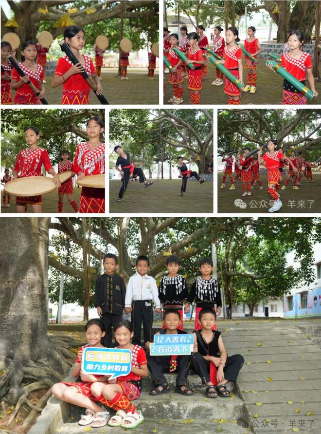 图:来自“大青树下的小学”的多民族孩子们载歌载舞感谢恒源祥带来的温暖与爱
